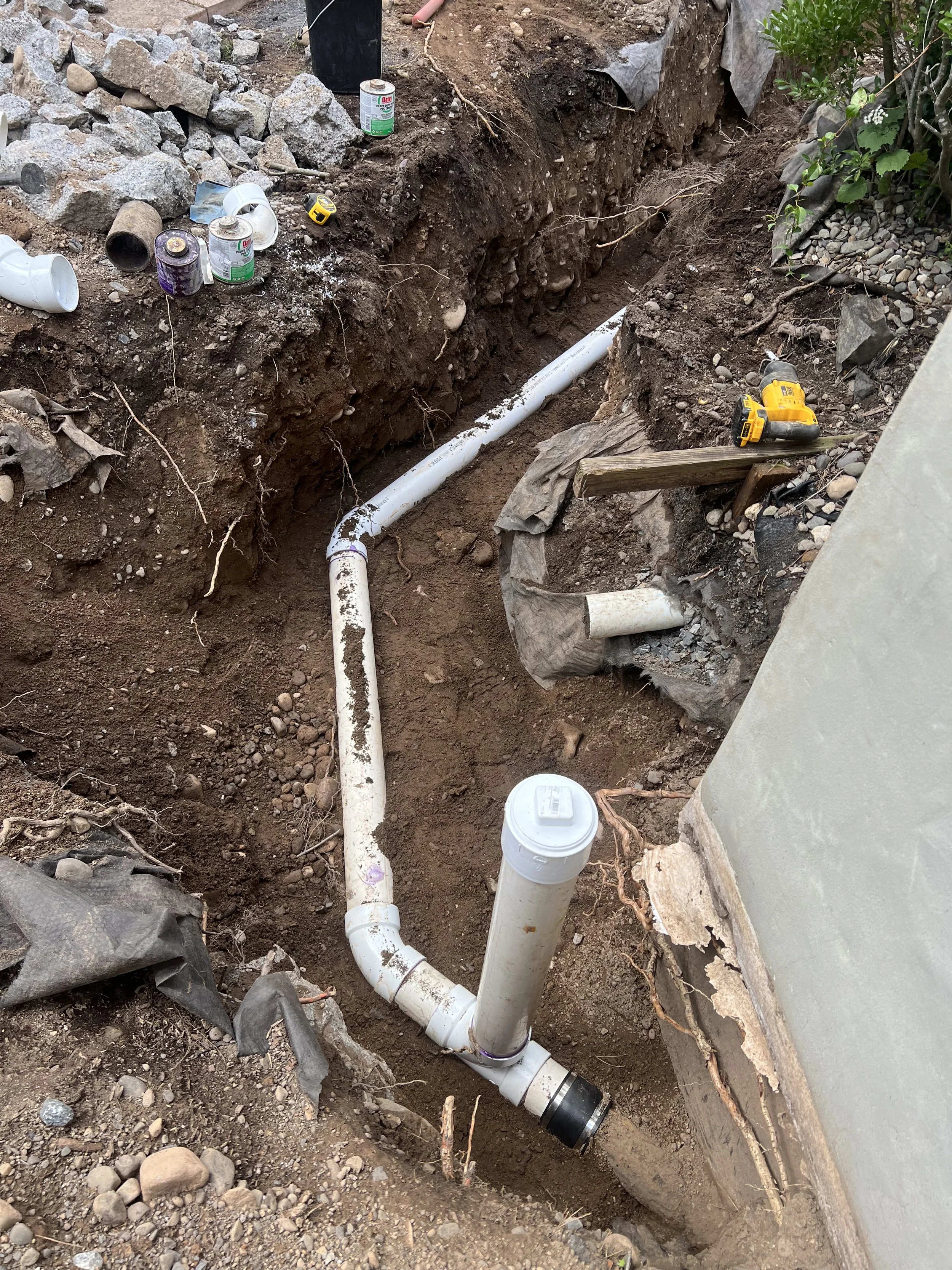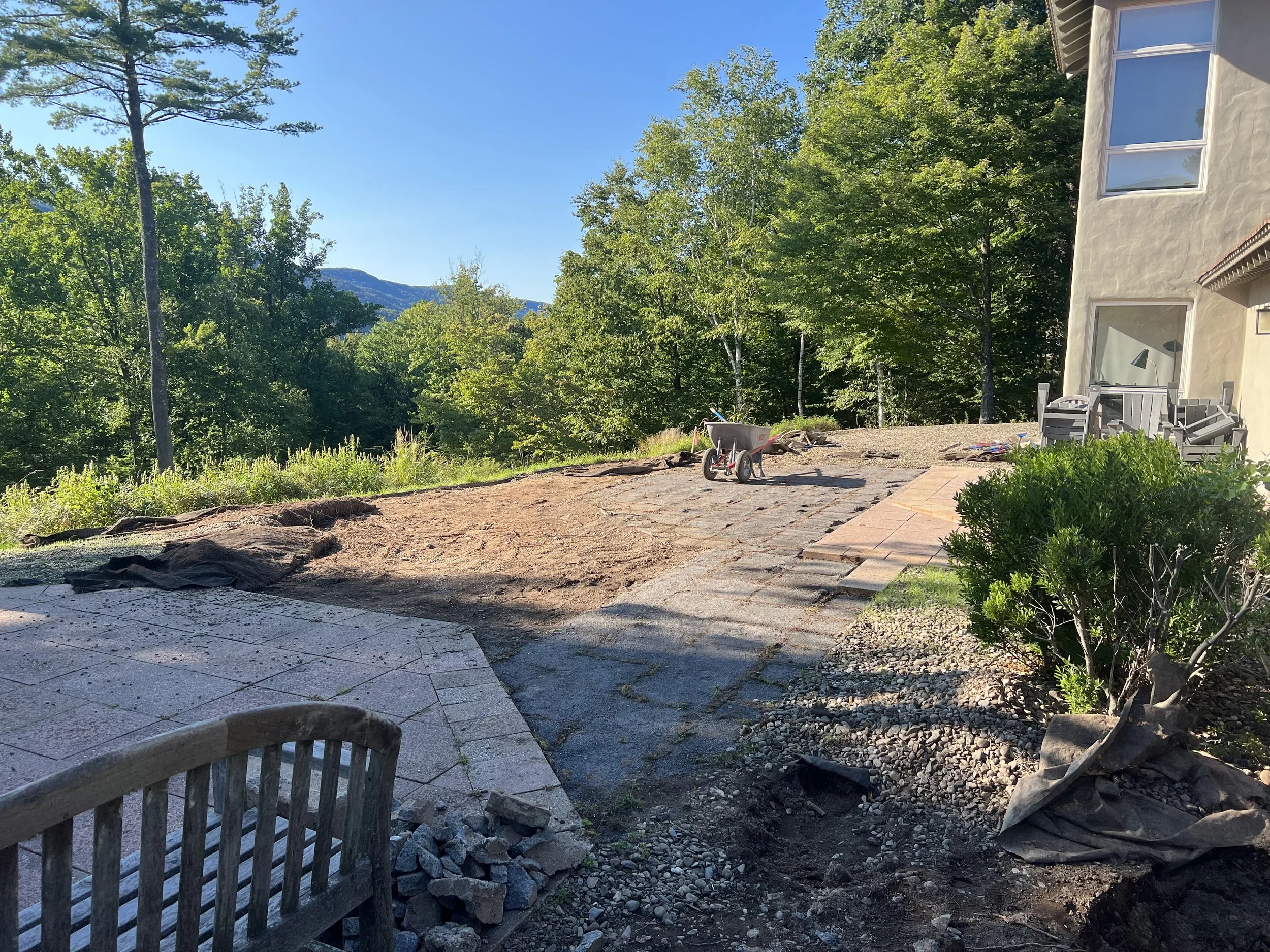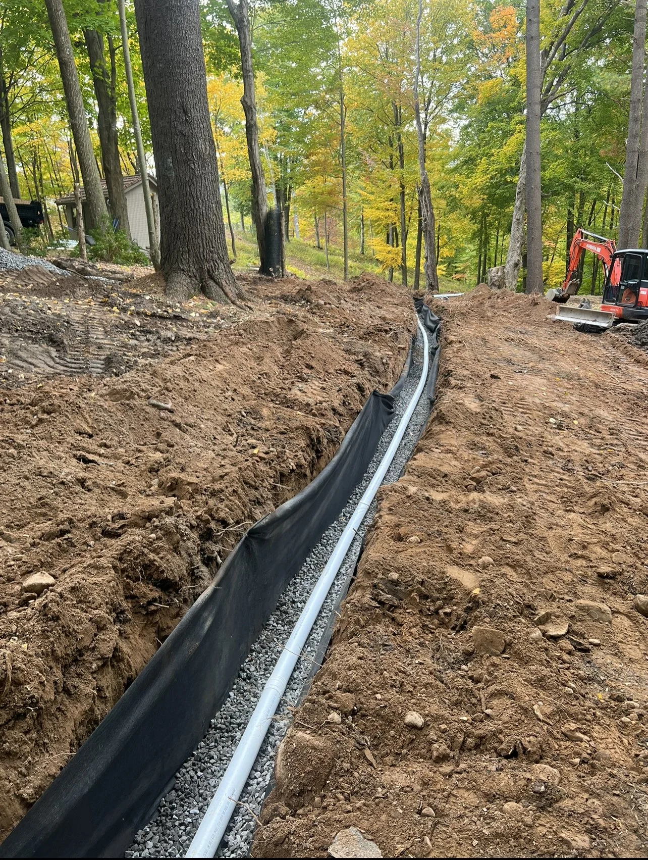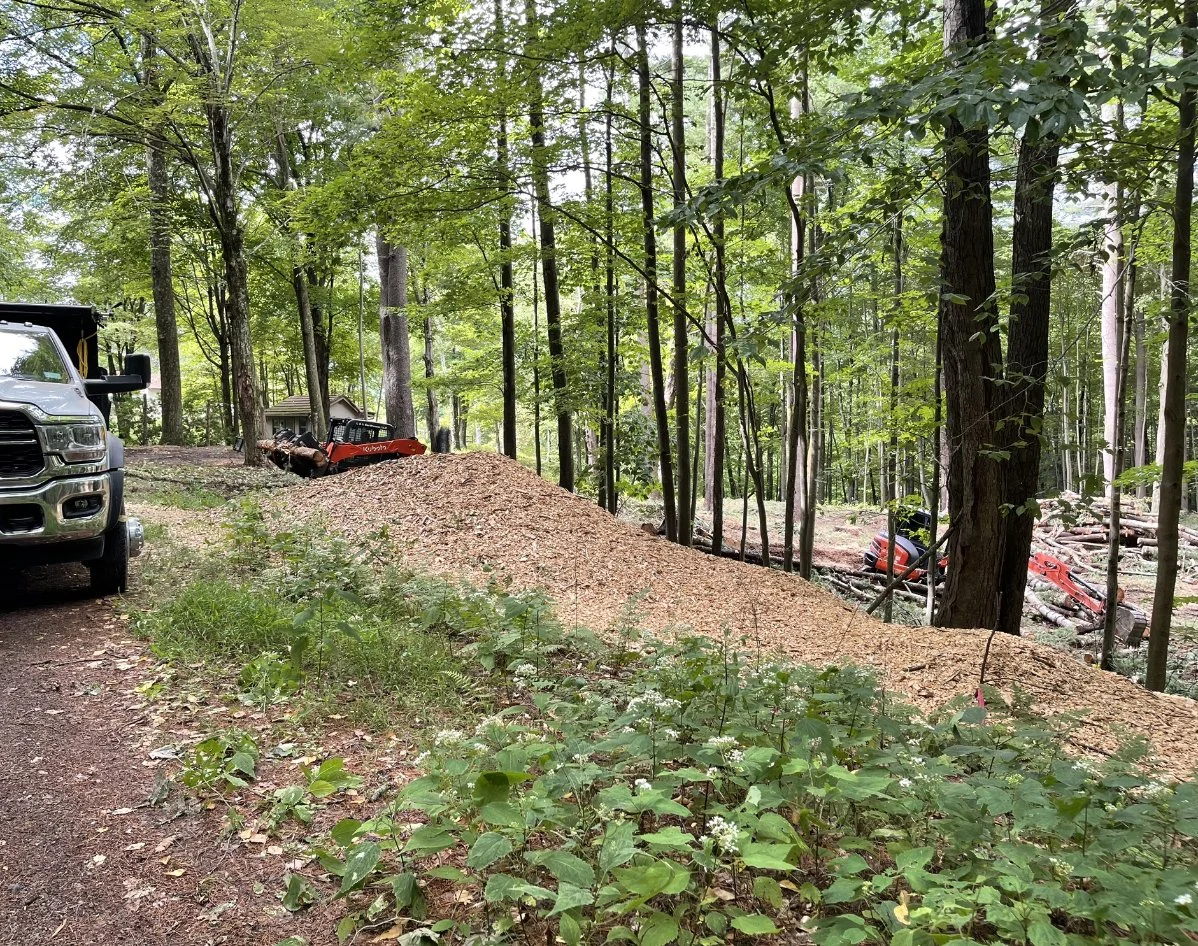 Septic System Installation (Replacement, Start to Finish)2000 Gal Septic Tank, 1500 Gal Pump Chamber/Tank, Manhole, D-Box, Raised Leach Field and Curtain Drain. Partial patio removal with replacement. Site clearing, trees chipped for walking trail.